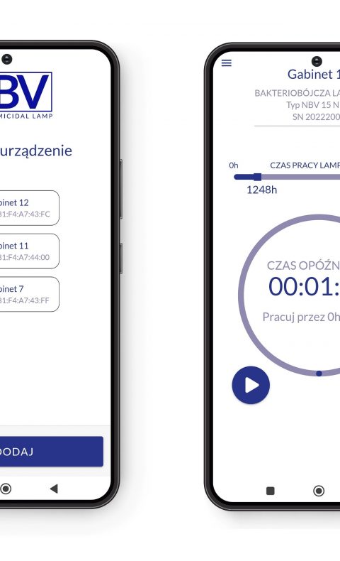 • System sterowania pracy lampy za pomocą smartfona: Moduł NBV BT Switch, aplikacja NBV App