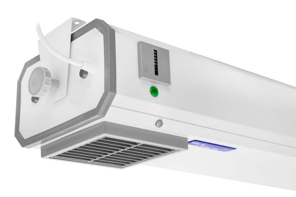 W skrócie, lampa wirusobójcza i bakteriobójcza przepływowa NBVE110SL z mechanicznym licznikiem czasu pracy. Urządzenie może pracować w obecności personelu i pacjentów.